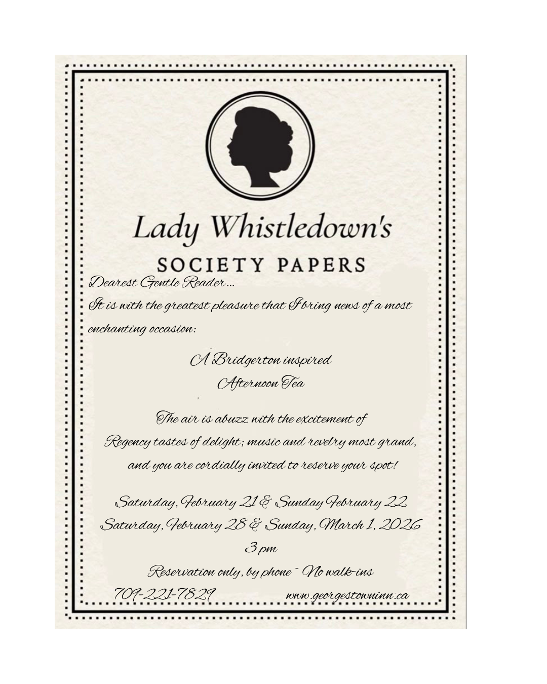 Why not book an extra special memory of an Edwardian High Tea as an add on to your booking with us! Served on crisp linen with Blue Willow China & featuring three tiers of hearty delights - using traditional NL & UK recipes - our elegant High Tea will be sure to feed the wandering soul! $ 42.99 CAD + applicable taxes with a stay!